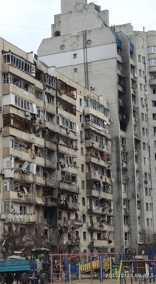 17:12 Дом в Киеве, в который прилетело в первую ночь полномасштабной войны. Первое фото – 25 февраля, второе – 29 октября.