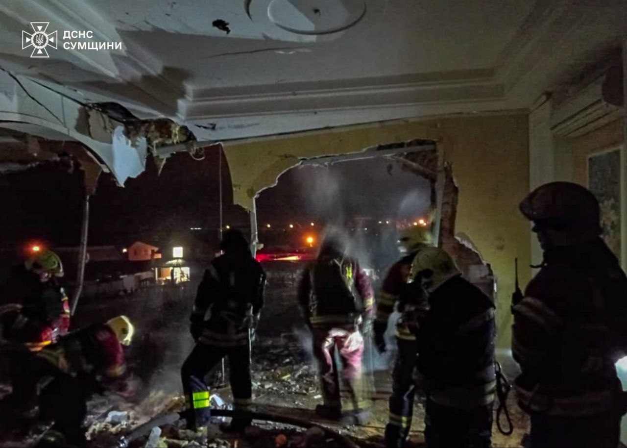Спасатели сообщили о частичном разрушении верхнего этажа двухэтажного частного жилого дома. Возник пожар, однако спасатели ликвидировали возгорание и обследовали территорию по которой был нанесен удар.