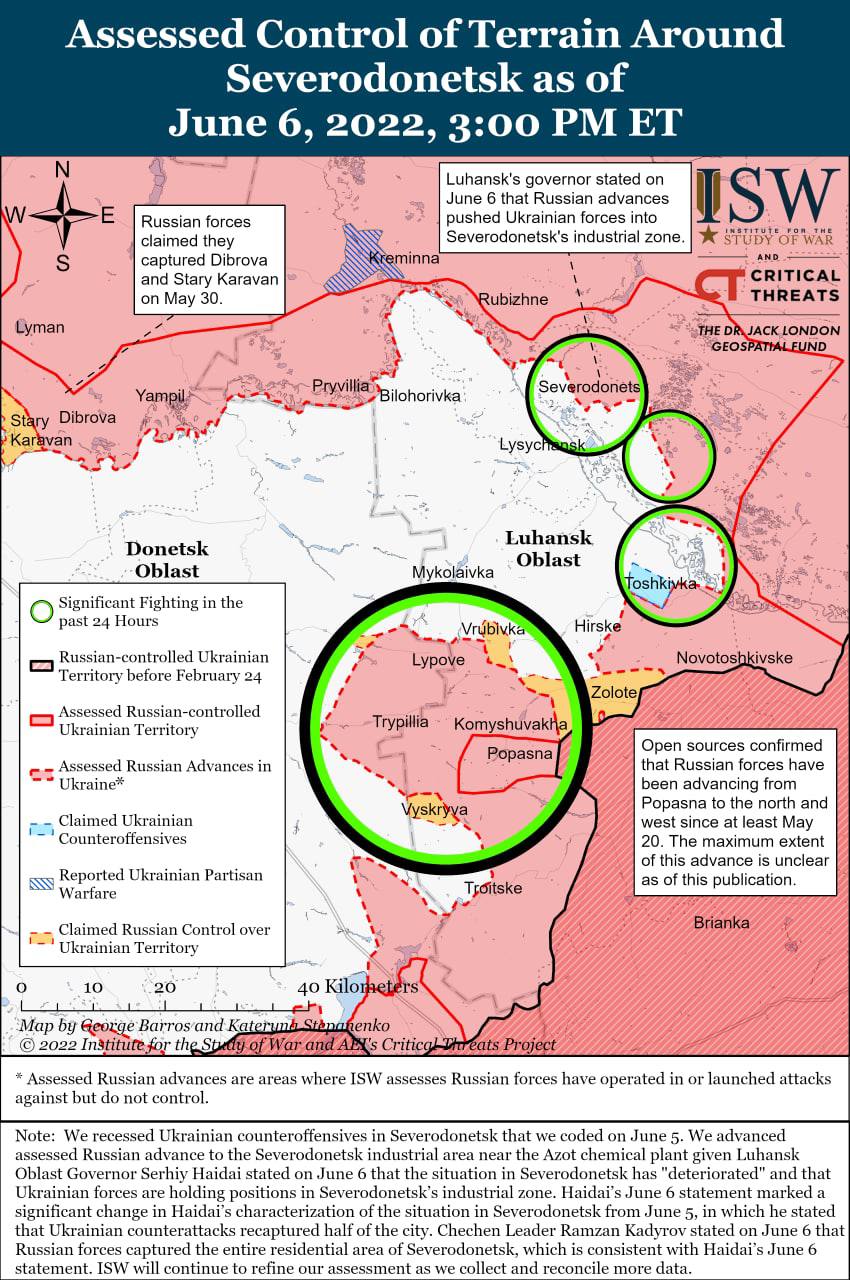 Идут 104-е сутки полномасштабной войны Украины с российскими оккупантами, силы РФ продолжают контролировать большую часть Северодонецка, хотя точная ситуация в городе остается неясной. Контроль часто переходит из рук в руки.