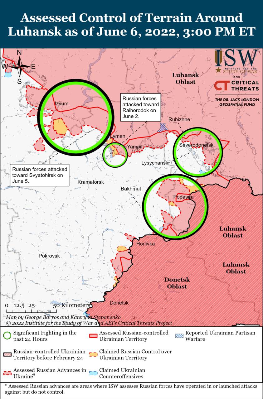 Кроме того, российские войска не добились успехов в районе Изюма. В то же время, достигли незначительных успехов в ходе наступления к западу от Лимана.