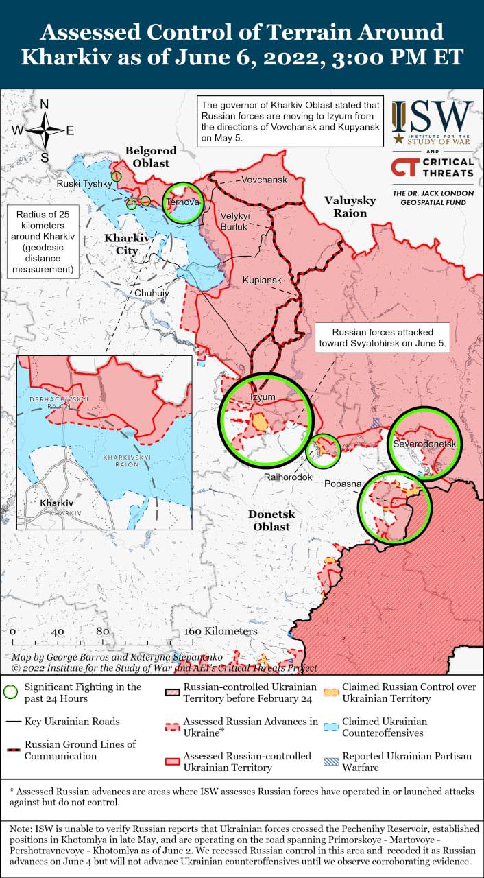 Украинские силы провели ряд ограниченных и локализованных контратак, которые заставили войска России сосредоточиться на удержании оборонных рубежей к северу от Харькова.