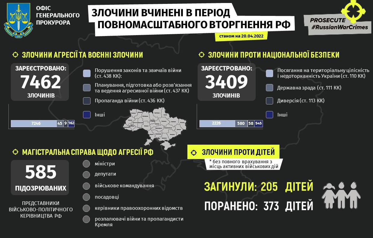 По состоянию на 20 апреля больше 578 детей пострадало в Украине от рук оккупантов – эта цифра неокончательная, поскольку подсчеты в местах ведения боевых действий продолжаются.