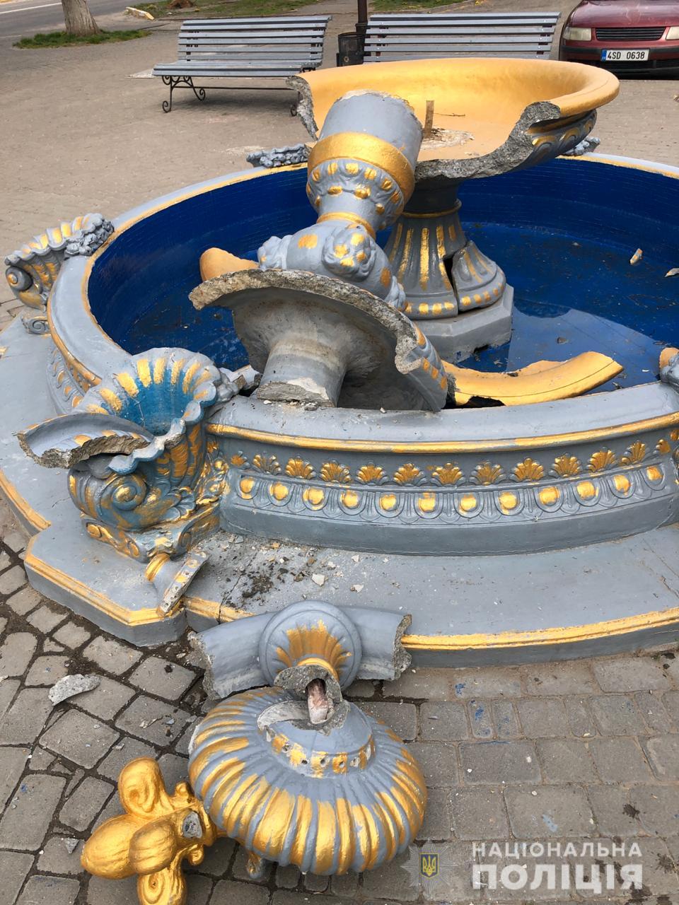 Разрушение заметил работник отдела государственной регистрации актов гражданского состояния, рядом с которым расположен фонтан. Он обратился в полицию, которая нашла в интернете видео.