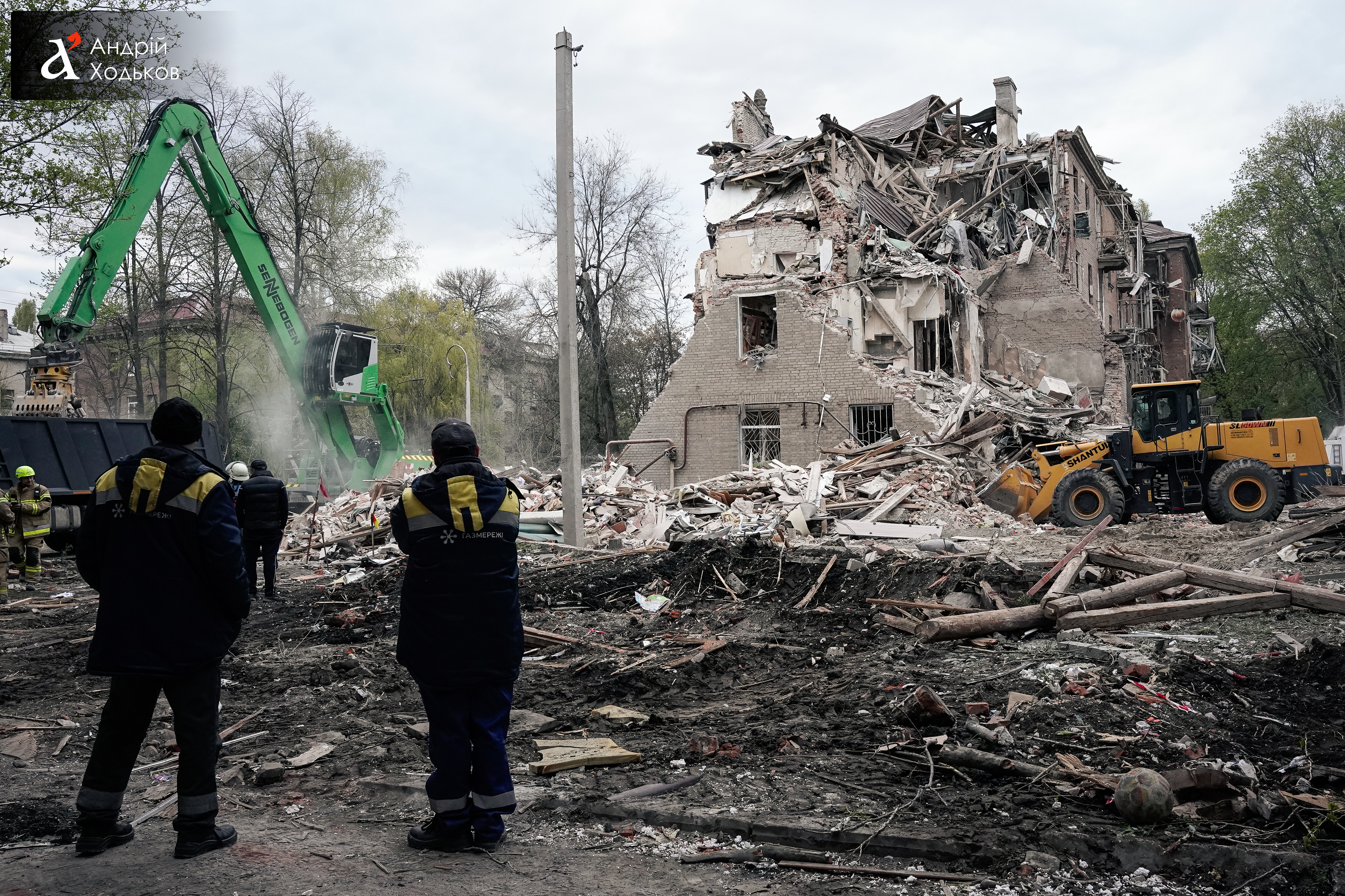 Спасатели продолжают работать на месте ночного удара по жилому кварталу.