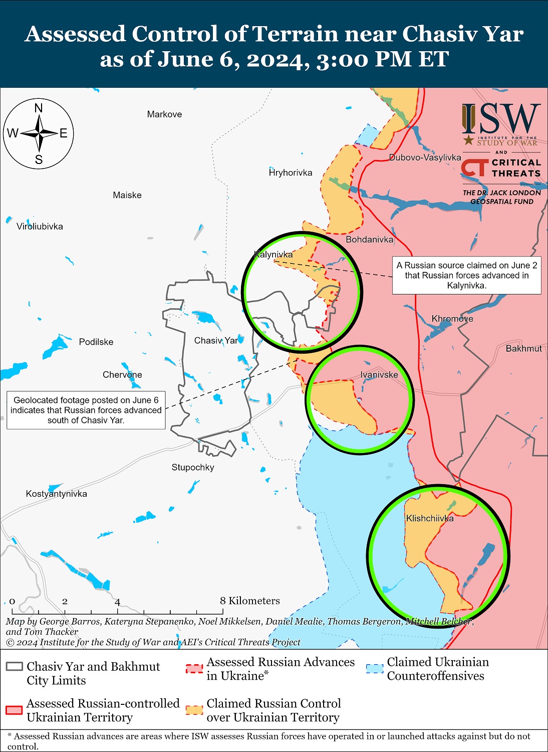 Войска РФ продвинулись на Северском направлении и вблизи Часового Яра. Бои продолжались у Калиновки, Ивановского, вблизи микрорайонов Канал и Новый (восточная часть города Часов Яр), около Клещеевки и Андреевки.