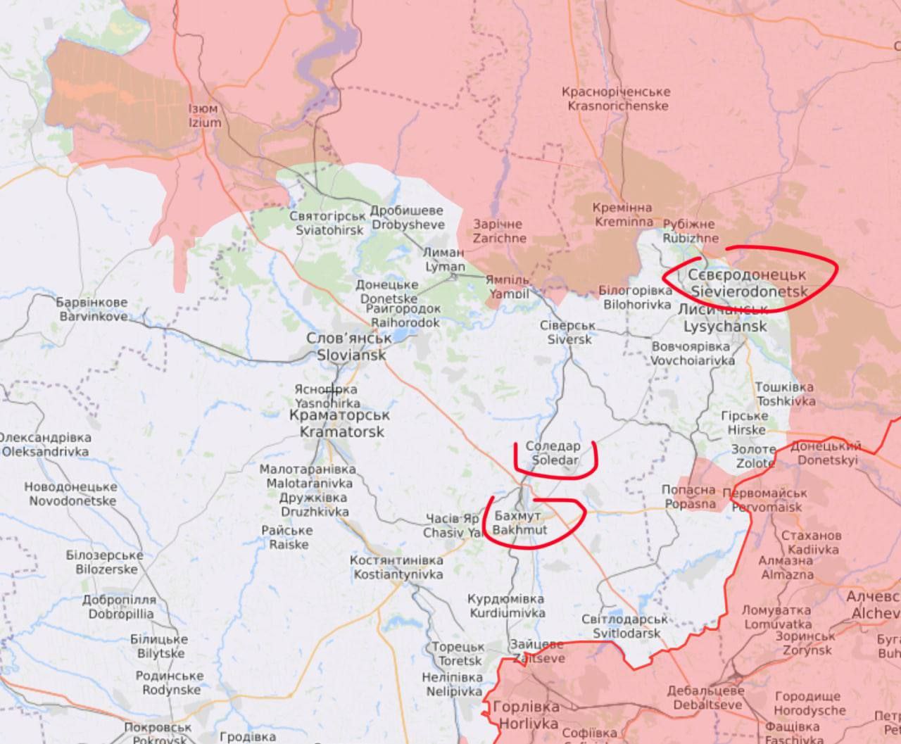 Вооруженные силы Украины ожидают от ВС РФ два крупных наступления – на Северодонецк и на трассу Лисичанск-Бахмут со стороны Попасной и Белогоровки.