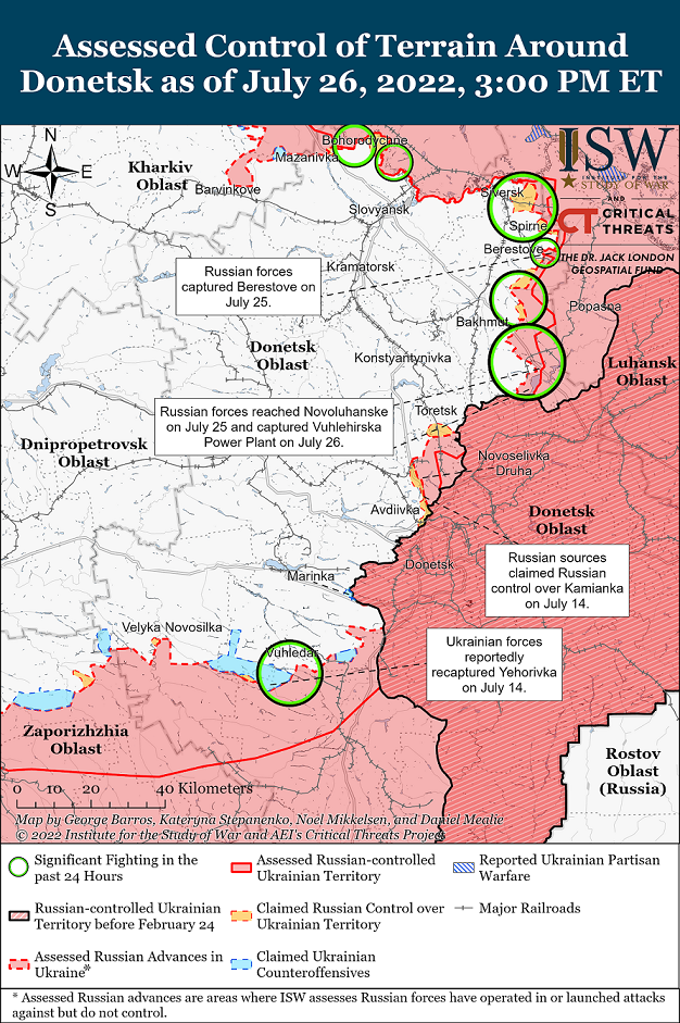 Так, замминистра информации так называемой "ДНР" Даниил Бессонов 25 июля заявил, что "республика" рассчитывает захватить всю Донецкую область до конца августа.