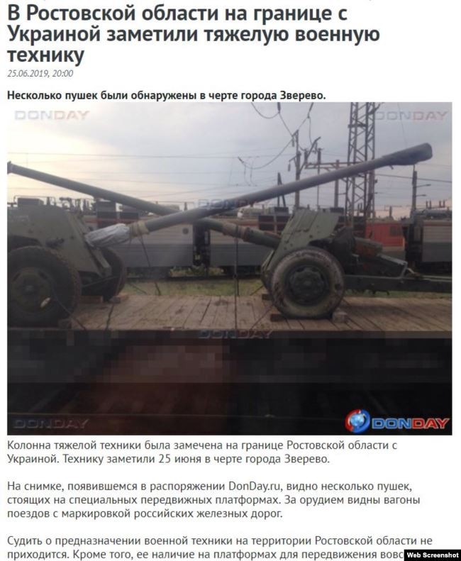 Эшелоны с пушками и бронированной техникой направлялись в Ростовскую область. Они фиксировались, начиная с конца июня до середины июля, пользователями соцсетей и местными российскими СМИ.