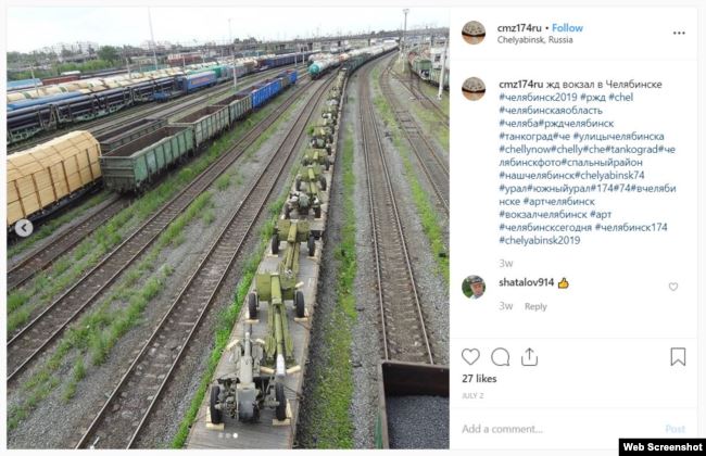 Снимки других орудий на железнодорожных платформах в конце июня опубликовало региональное издание DonDay. В публикации отмечалось, что эшелон с военной техникой замечен возле границы с Украиной (собственно, с оккупированной частью Донбасса) - в городе Зверево. На снимках - противотанковые 100-мм пушки Т-12 "Рапира", которые сейчас в российской армии также заменяют более новыми модификациями.