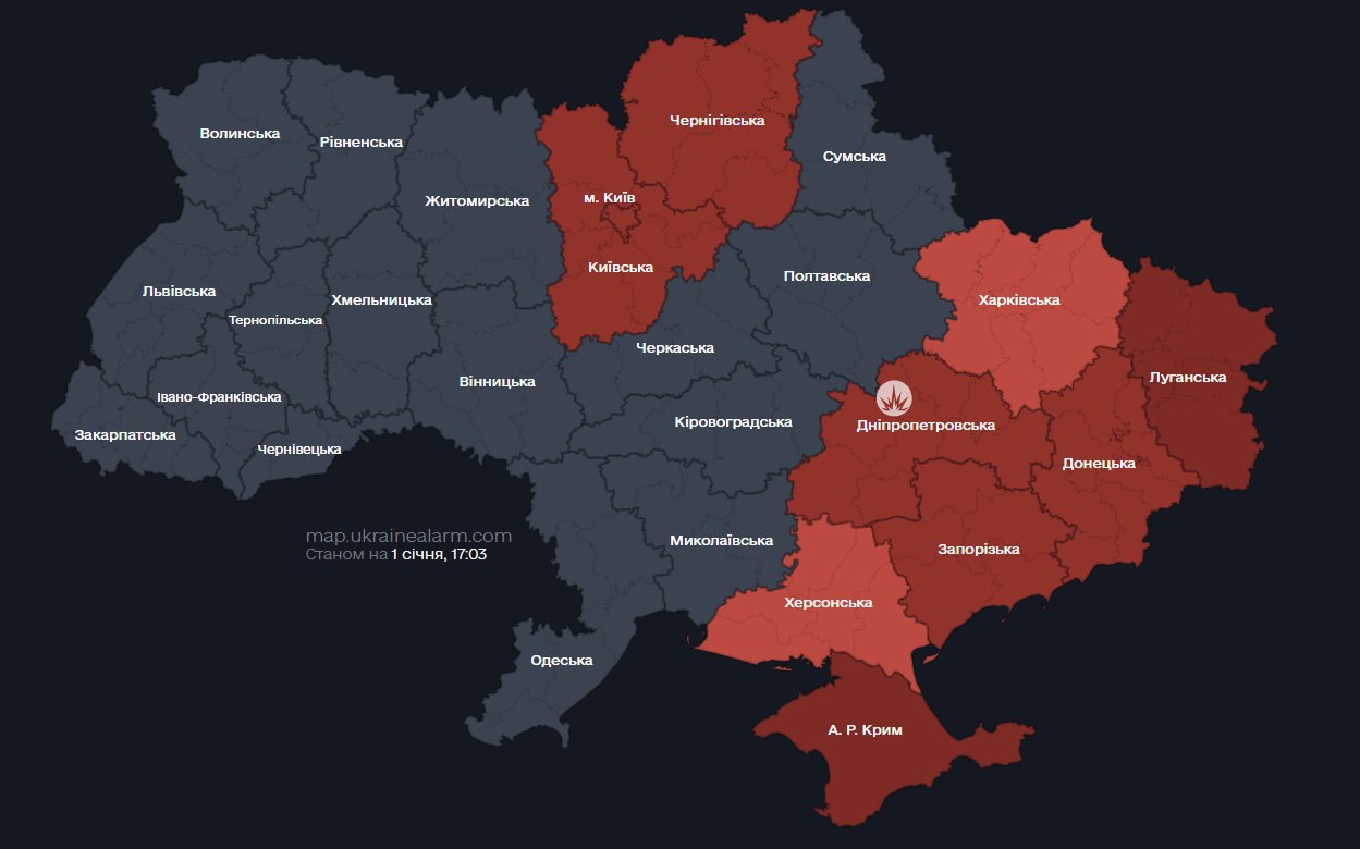В первый день 2024 года российская армия продолжила террористические обстрелы Украины ракетами и БПЛА. В Киеве были слышны взрывы - работала система ПВО.