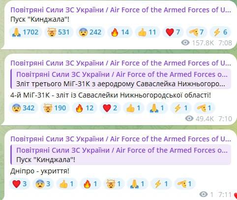 07.19. Повторный пуск "Кинжала" по направлению Киевской области.