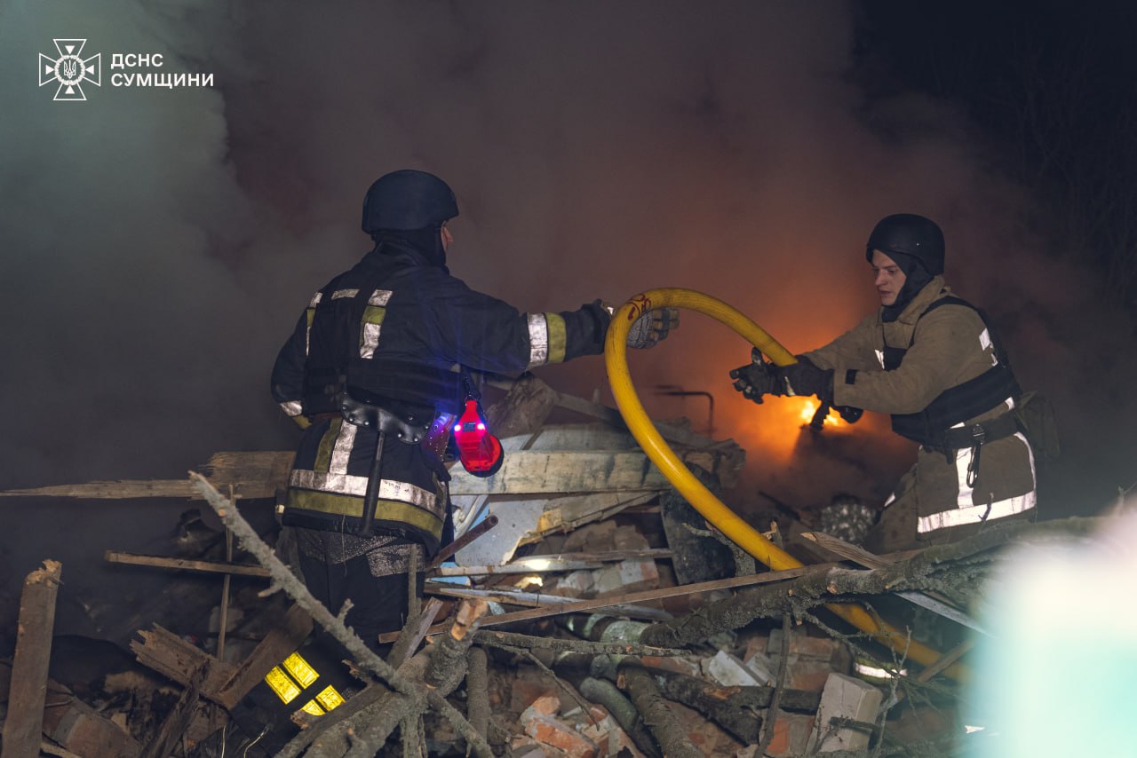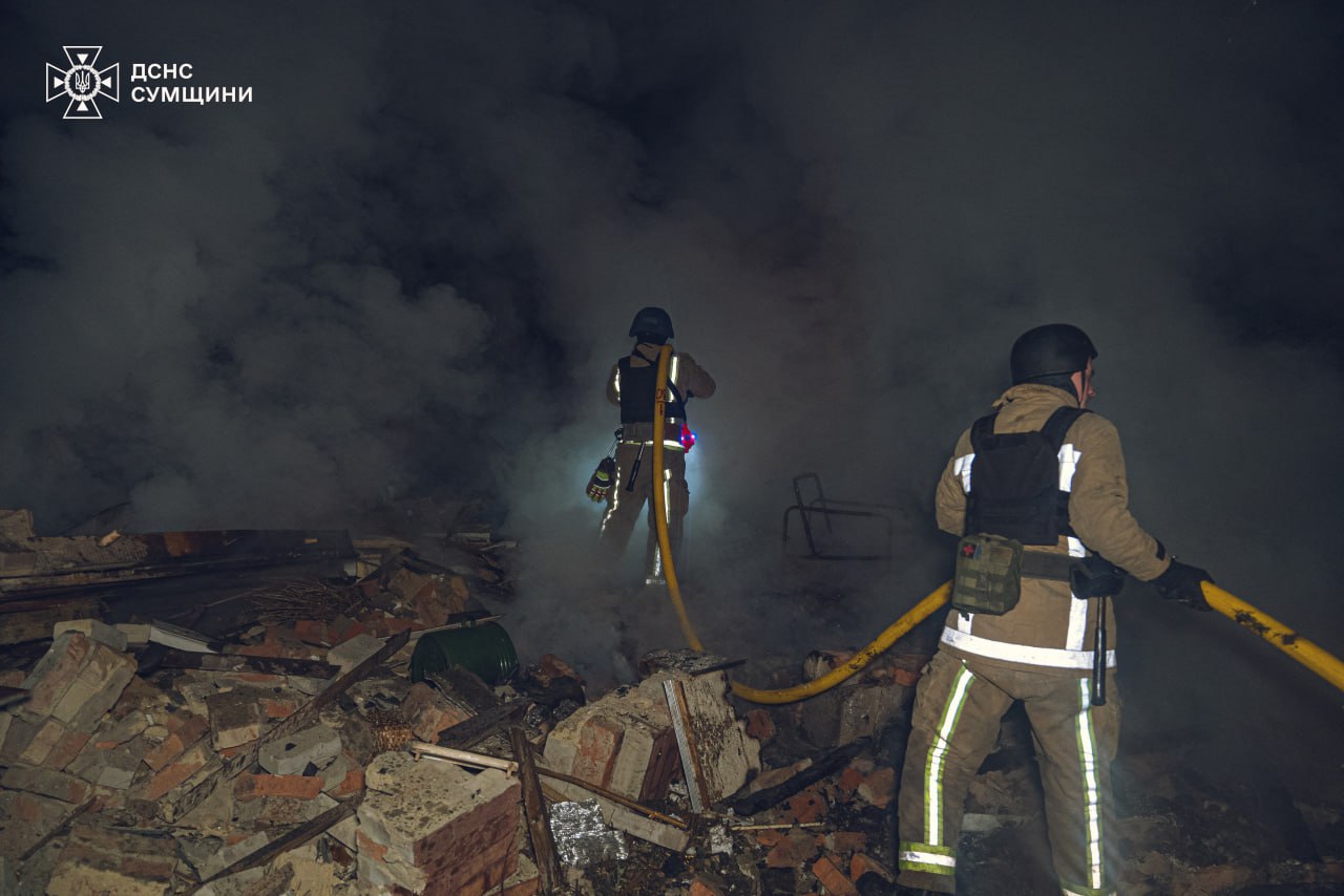 Сумская ГВА уточнила, что ночью произошло падение двух российских беспилотников. Один упал на территории Буринской громады, второй - Сумской. В первом случае, взрывной волной повреждено более 30 окон в жилых домах, и более 20 - в учебном заведении. Предварительно, люди не пострадали. А во втором - разрушены и повреждены дачные дома.