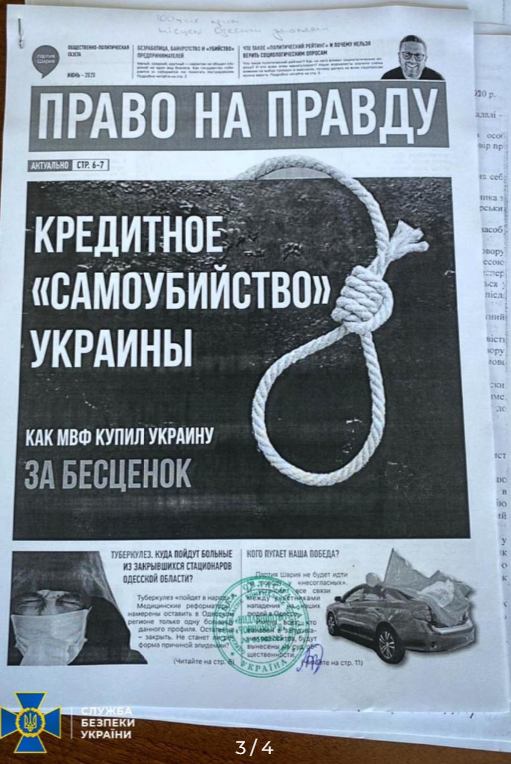 Также обыски провели в типографии, которая находится в Виннице. Именно там печатали продукцию антиконституционного характера.
