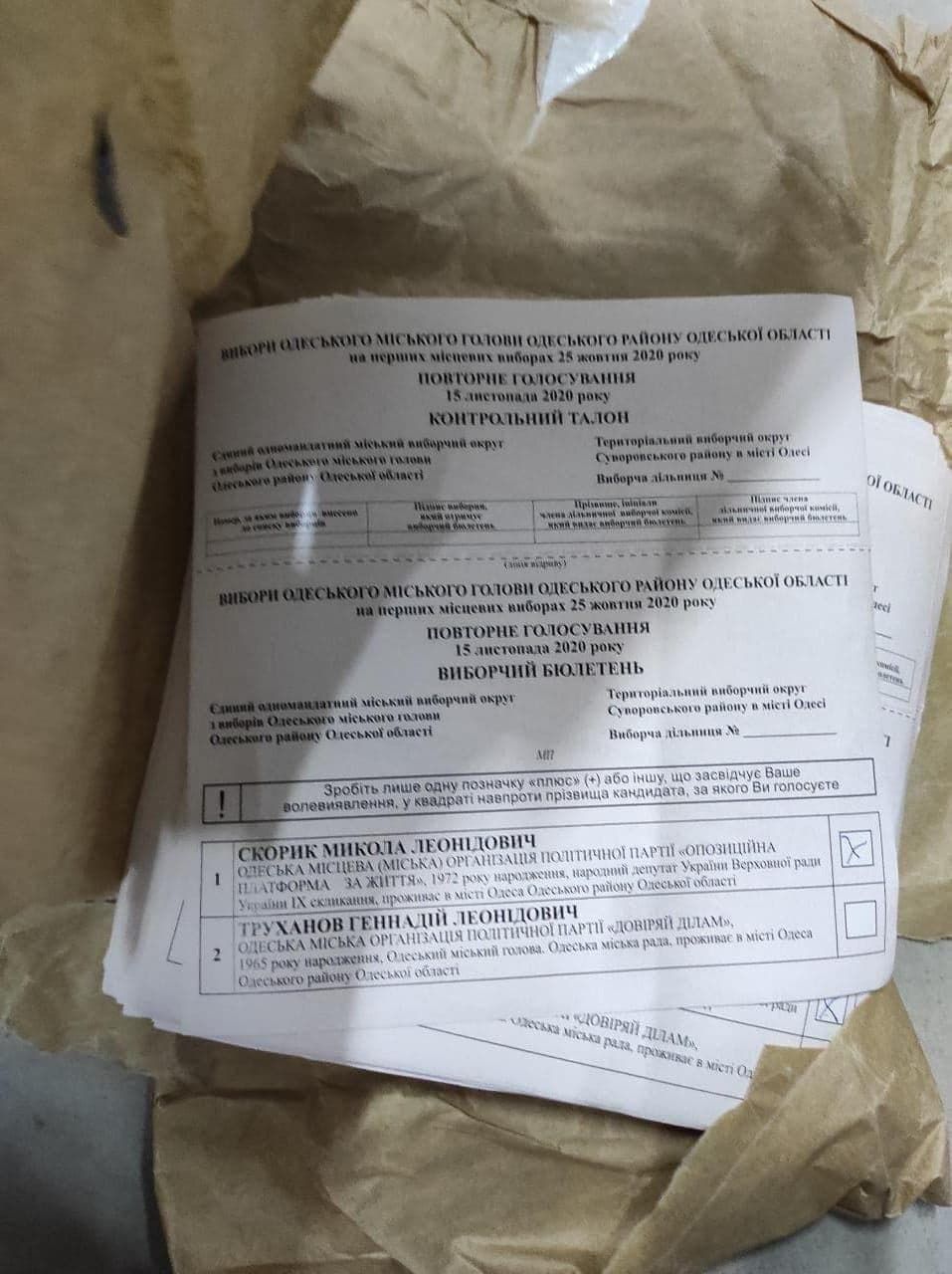 В офисе Дмитрия Голубова СБУ якобы изъяла фальшивые бюллетени, которые готовились для вброса во втором туре выборов мэра Одессы, 15 ноября.
