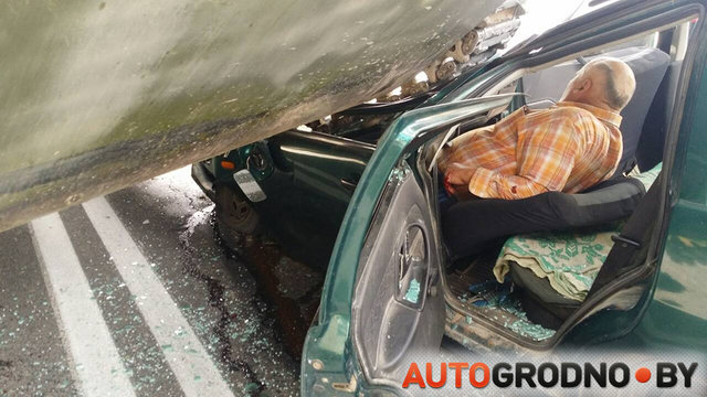 Несмотря на страшный фотографии последствий аварии, водитель легковушки отделался незначительными травмами.