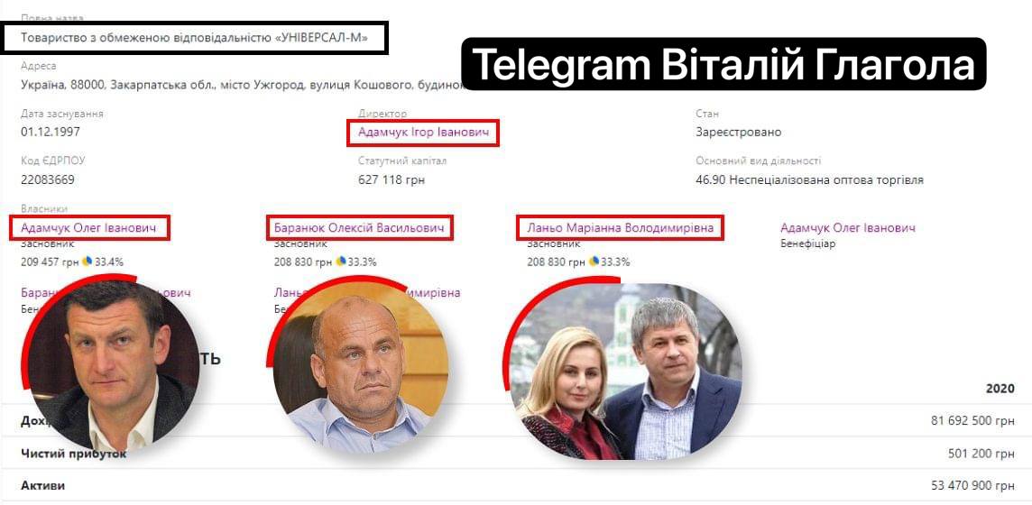 "В эти минуты НАБУ совместно с СБУ проводят обыски у председателя Мукачевского районного совета Михаила Ланя, почетного консула Словакии в Ужгороде Олега Адамчука и его брата Игоря, а также эксдепутата Закарпатского областного совета и владельца гостиницы "Ужгород" Алексея Баранюка", - написал журналист.