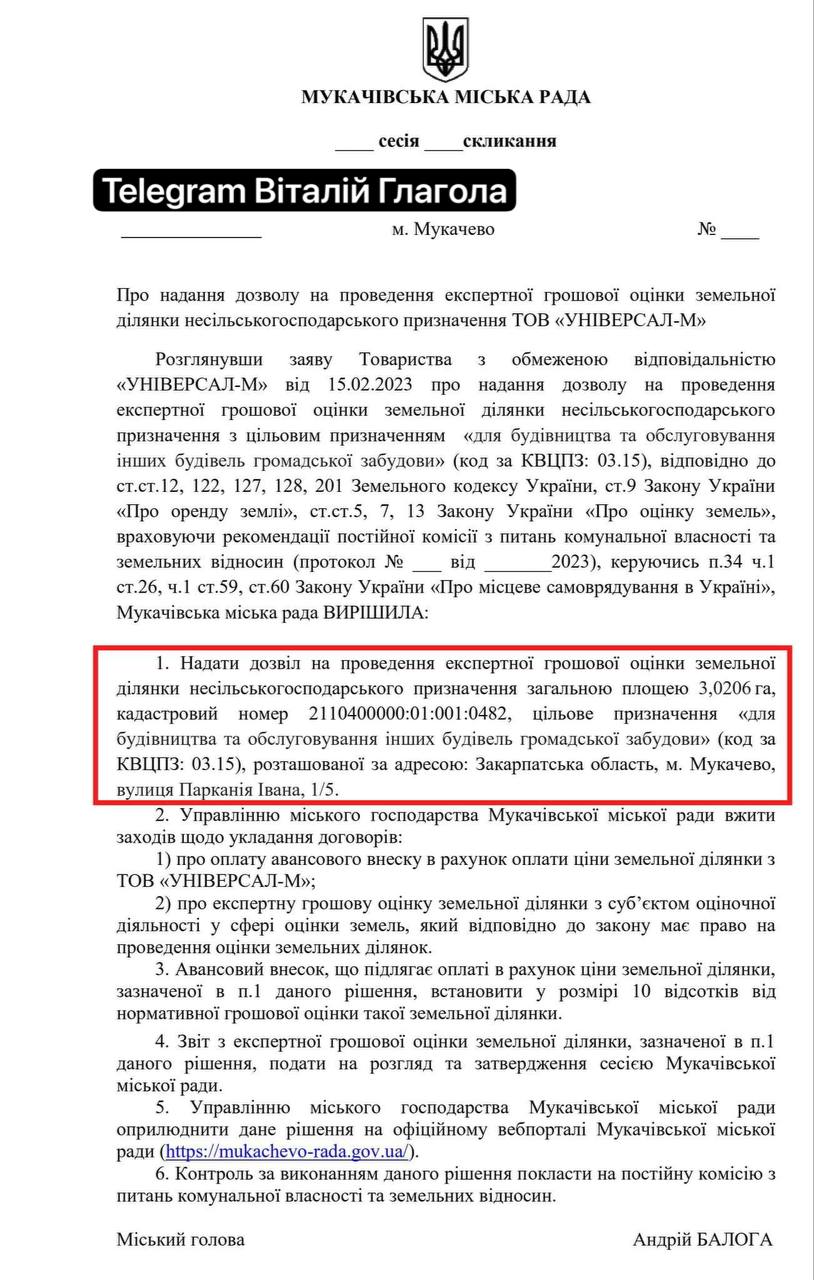 "По данным наших источников в правоохранительных органах, обыски у мэра Мукачево проходят как раз схему продажи коммунальной земли вокруг стадиона "Авангард". Это лакомый кусок в центре Мукачево на берегу р. Латорица", - пишет Глагола.