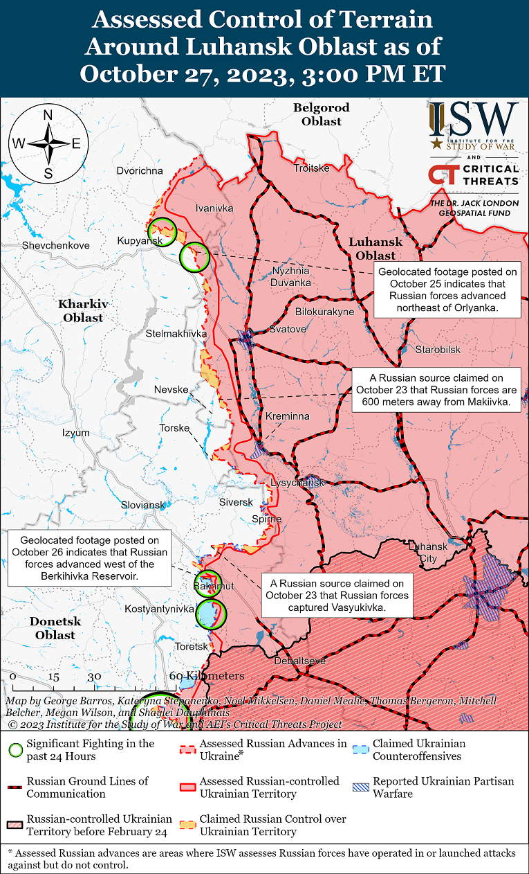 Согласно сообщениям ISW, 27 октября российские войска совершили наступательные действия вдоль линии Купянск-Сватово-Кременная, однако не добились подтвержденных успехов.