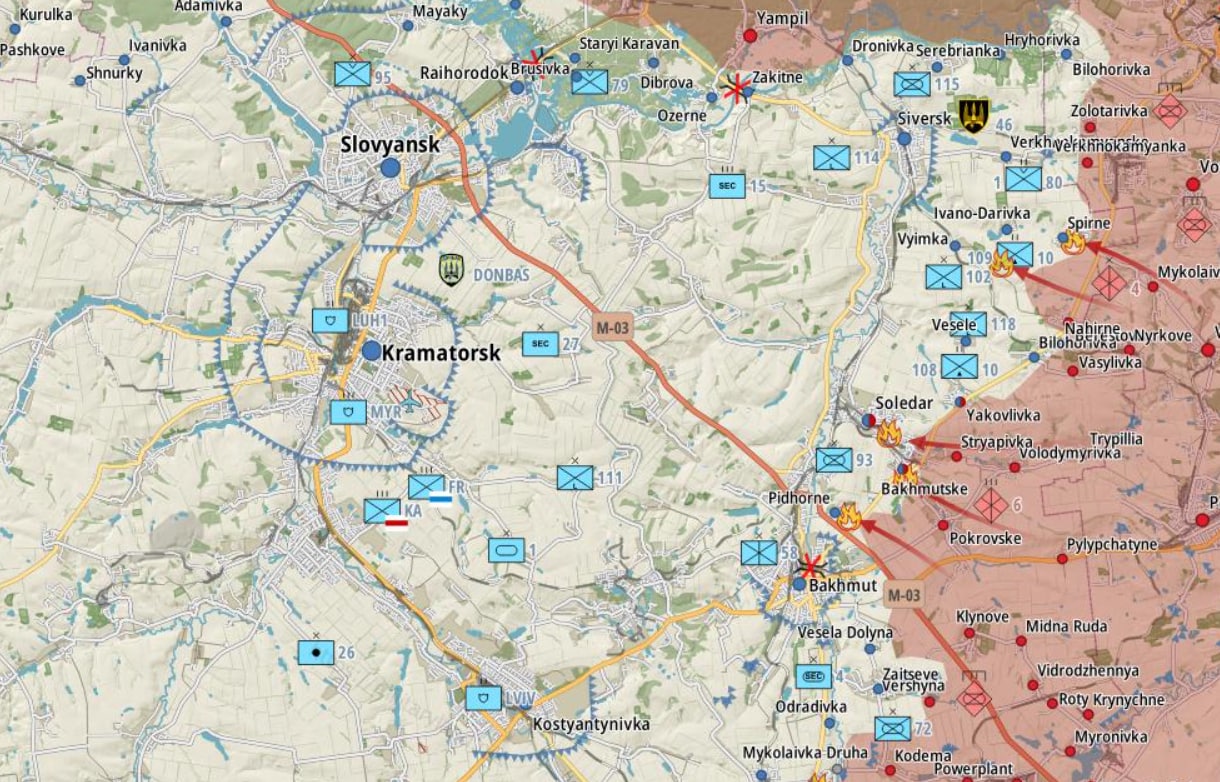 Бои продолжаются в Соледаре и Бахмутском. Российские войска пытались прорвать украинские позиции в направлении Подгорного: немного продвинулись, но не дошли до поселка. Украинские защитники отбили российские атаки в районе Майорска и в направлении Курдюмовки.