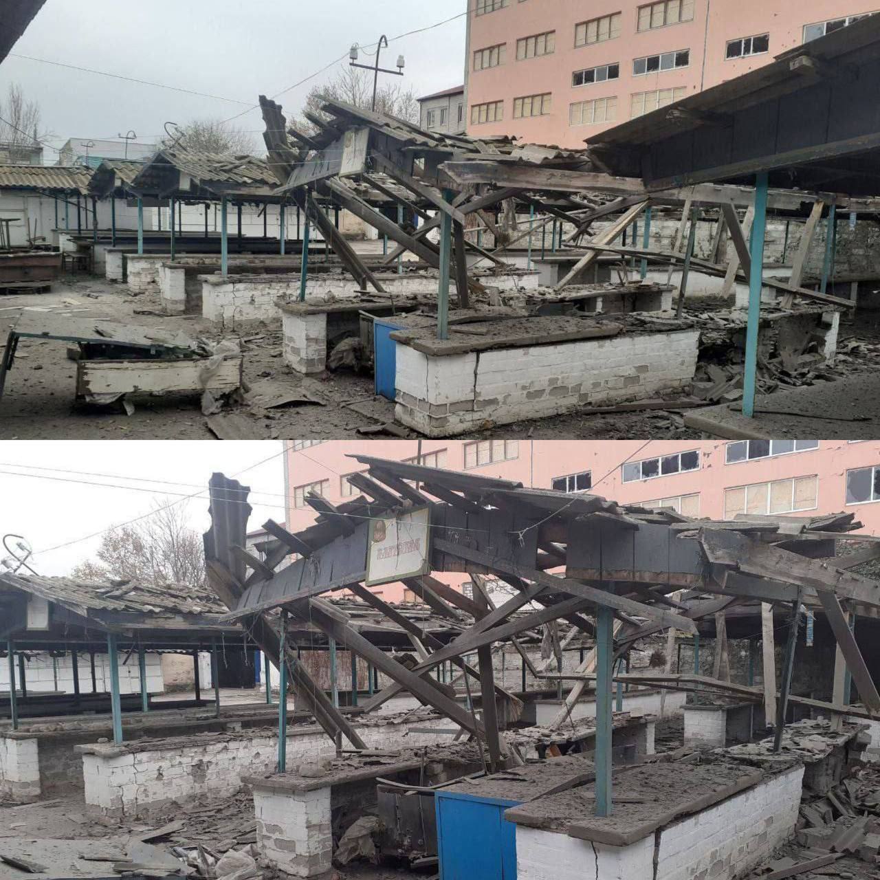 Также появились фотографии частично разрушенного рынка.
