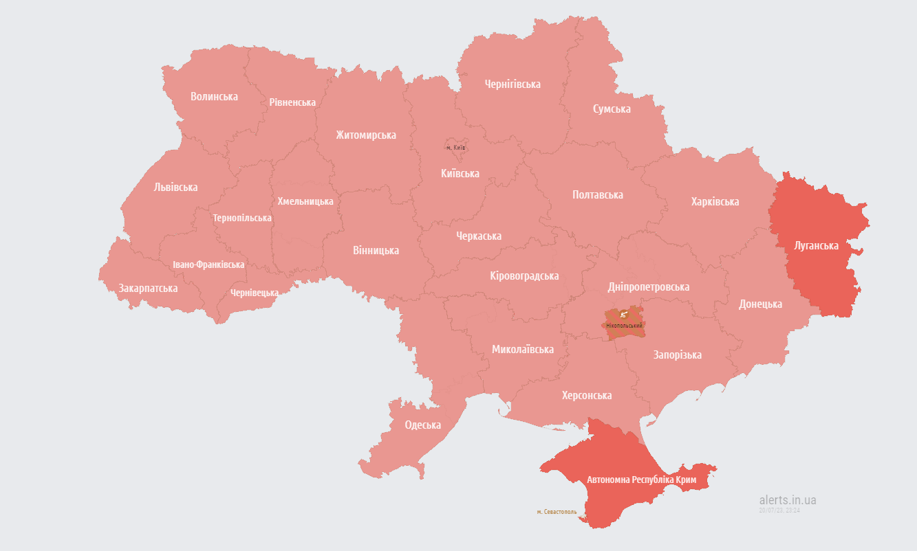 Вечером четверга, 20 июля, на всей территории Украины снова объявили воздушную тревогу.