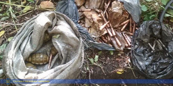 Второй схрон находился в селе Райгородка, который оборудовал местный житель в своем дворе. Здесь он спрятал четыре боевые гранаты РГД-5 и Ф-1, четыре запала и почти 400 патронов калибра 7,62 мм.