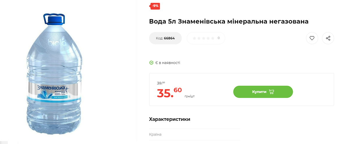Следует отметить, что в известных украинских супермаркетах воду разных марок с таким объемом продают по цене 35,60 грн/шт или 30,99 грн/шт. То есть цена за воду в Кривом Роге завышена в 7-8 раз.