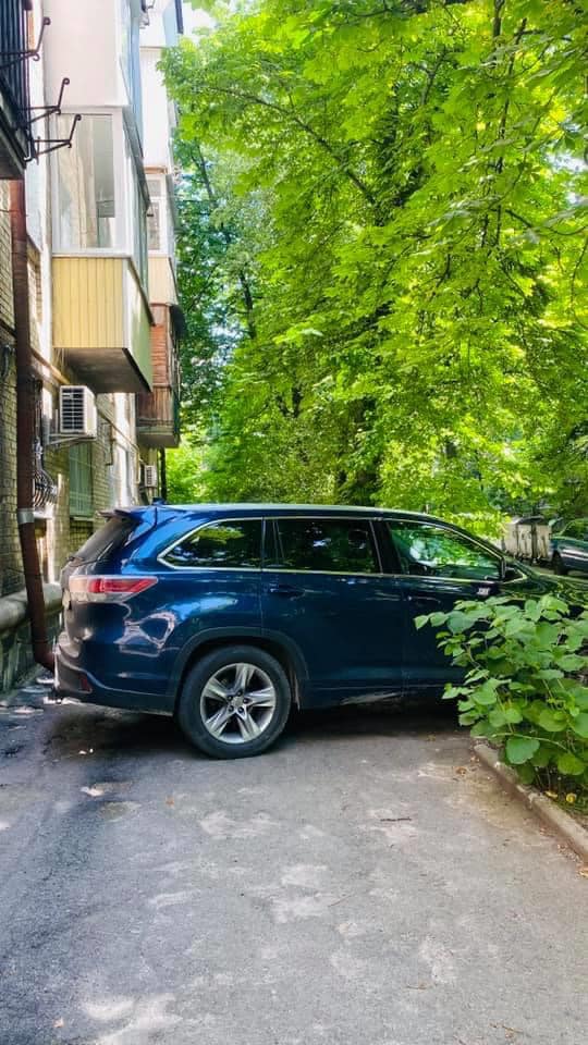 В Киеве водитель отличился "героической" парковкой возле жилого дома.