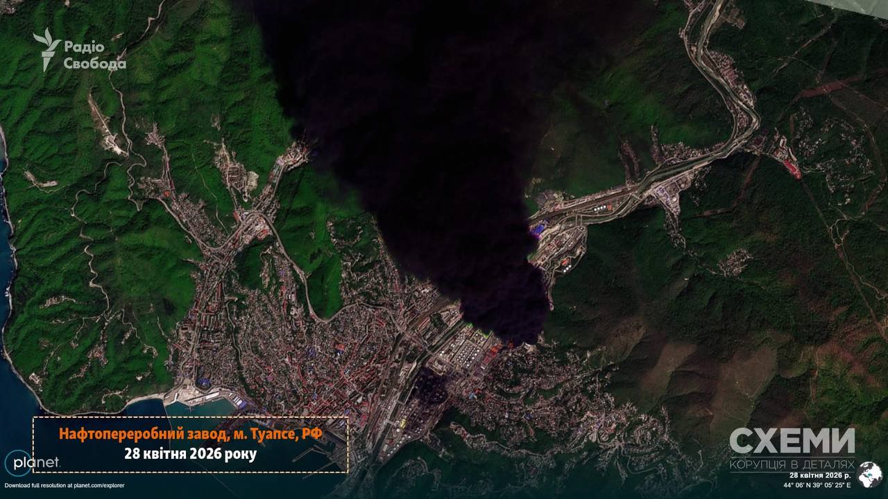В ночь на 28 апреля Силы обороны Украины вторично атаковали нефтеперерабатывающий завод "Туапсинский" в Краснодарском крае РФ. В результате попадания ударных беспилотников на территории предприятия вспыхнул пожар.