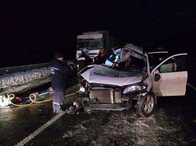 Отмечается, что 39-летний водитель легковушки "Hyundai Santa Fe", двигаясь в направлении Хмельницкого, не справился с управлением и выехал на полосу встречного движения и столкнулся с грузовым автомобилем.