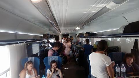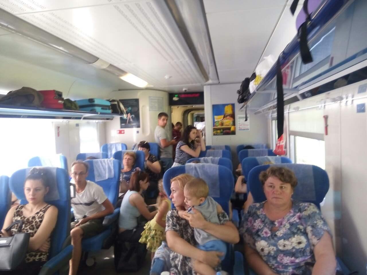 В поезде класса Интерсити сообщения Одесса-Киев не хватило мест на всех пассажиров, из-за чего многим из них пришлось ехать стоя в проходах.