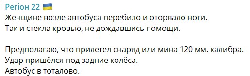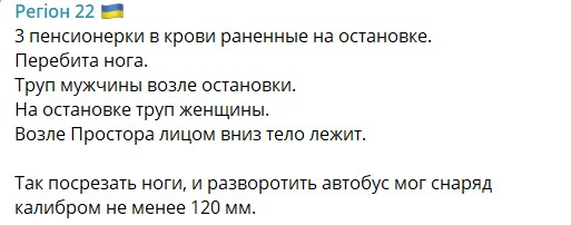 "В Новой Каховке прилет в автобус на остановке Prostor. Есть раненые и убитые. Там просто ужас. Мясо", "Прилетело на остановку "Детский мир" рядом с автобусом. К настоящему времени точно известно о трех погибших и много раненых", "Очень громко было, будто кассеты разлетались", - пишут местные жители.