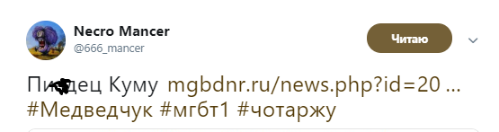 "Пи*дец Куму", - прокомментировал сообщение боевиков блогер.