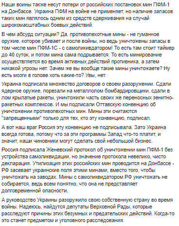 "Мы поддерживаем международные усилия, направленные на полное выполнение Оттавской конвенции. Согласно своим обязательствам, предусмотренным в статье 4 Оттавской конвенции, Украина уничтожила свыше 3 миллионов противопехотных мин и продолжает амбициозный проект утилизации противопехотных мин ПФМ-1 и ПФМ-1С", - сказал он.