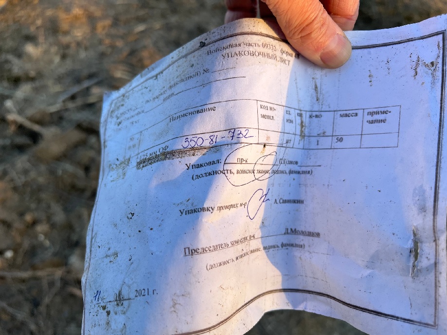 "На выжженной земле валяются остатки российских сухпаев и упаковочный лист об упаковке танковых снарядов 125 мм прапорщиком Куликовым из воинской части 09332 - это и есть 7-я военная база, так называется мотострелковая бригада ВС РФ, которая оккупирует грузинскую Абхазию", - рассказал Бутусов.