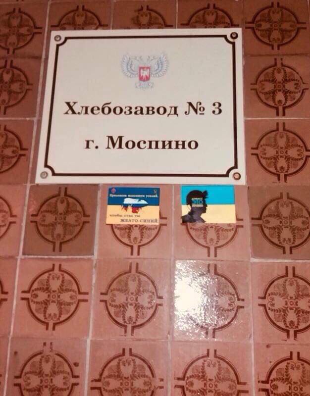 "Открытки появились на оккупационных административных зданиях, остановках общественного транспорта, магазинах, дверях подъездов и везде где клеились. А точнее: в Донецке (улицы и здания микрорайона Донской, Щетинина, Раздольное), улицы и здания города Моспино, на Старобешевський ТЭС (пгт. Новый Свет). И что героичнее всего: эти наклейки появились на дверях общаги Старобешевского ПТУ, где проживают российские солдаты оккупационных сил РФ", - написал журналист, публикуя соответствующие фото.