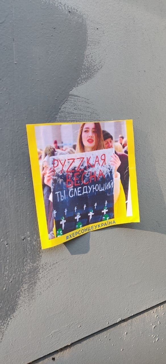 Украинские патриоты массово распространяют патриотические открытки с призывами не брать паспорта от российских оккупантов, с надписями, что Херсон – это Украина, а также рисуют и цепляют желтые ленты в знак, что эта территория украинская.