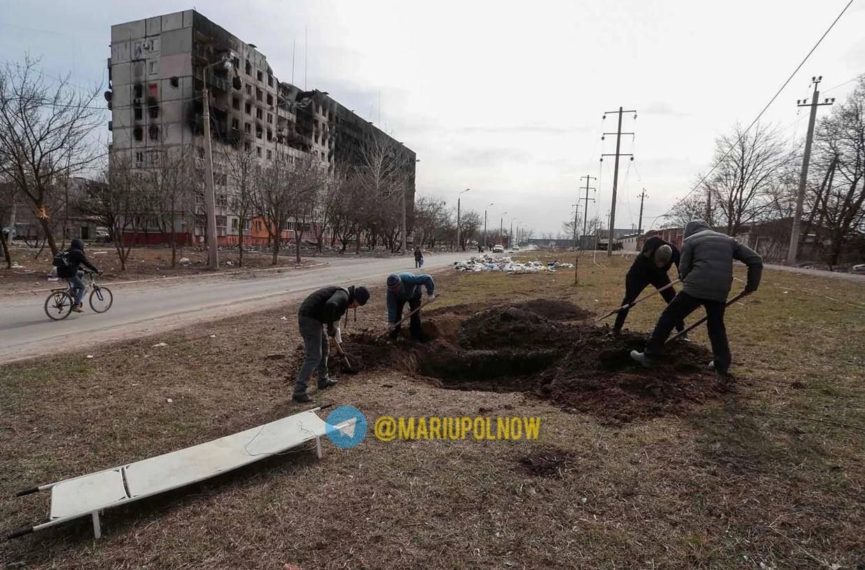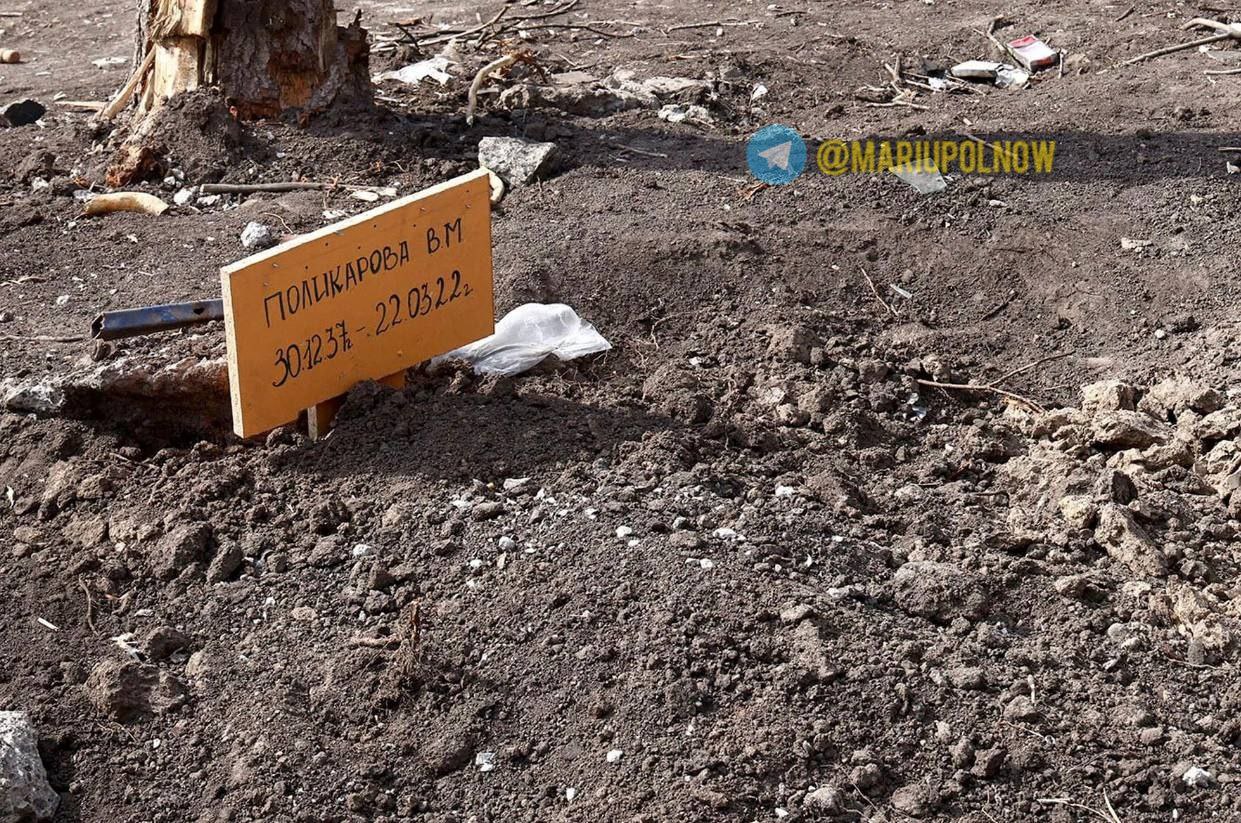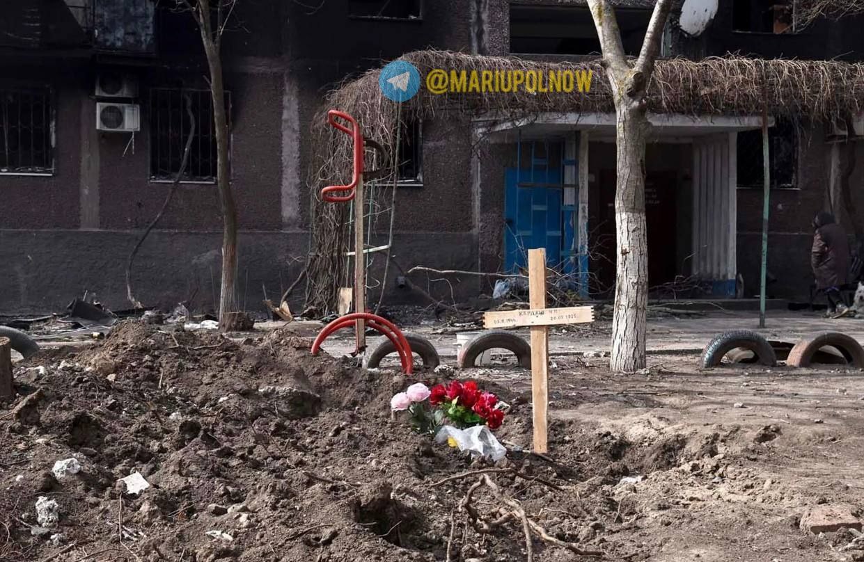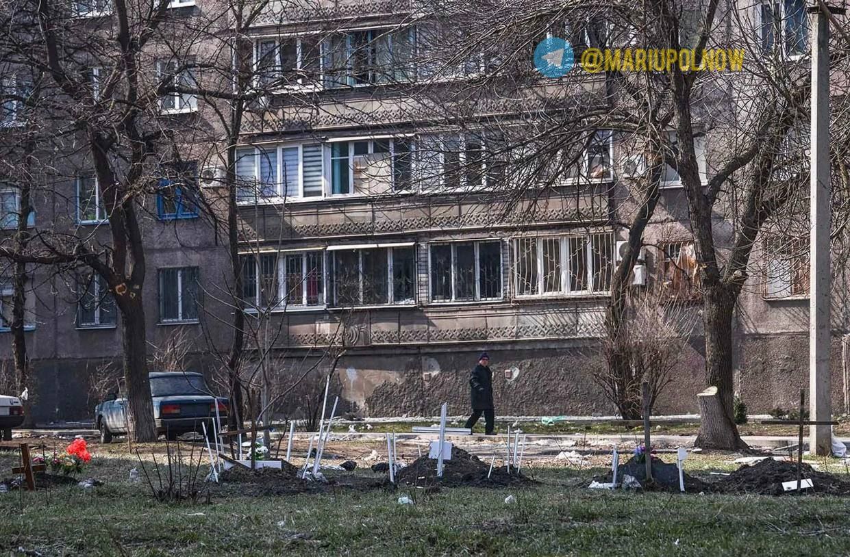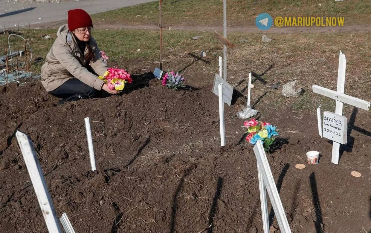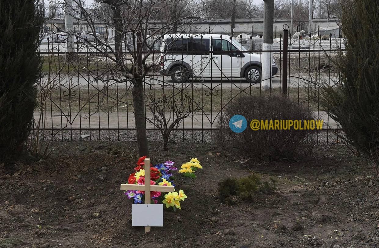 В Мариуполе, наиболее пострадавшем от вторжения российских войск в Украину, убитых хоронят посреди улиц города. Из-за постоянных обстрелов люди не могут вывезти погибших на кладбище.