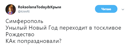 "Симферополь. Унылый Новый Год переходит в тоскливое Рождество. Как попраздновали?", - говорится в сообщении.