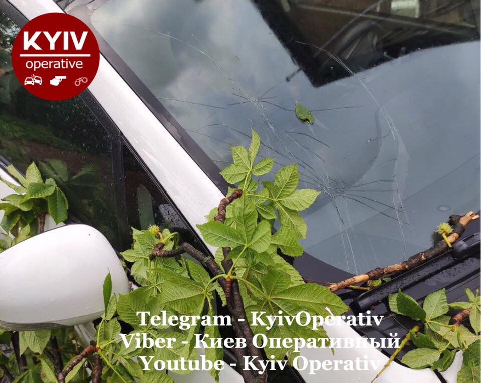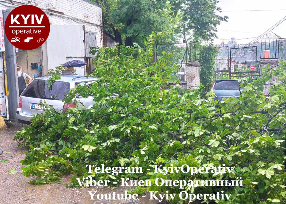 На улице Олеговской в Киеве из-за непогоды дерево упало на автомобиль, внутри которого находился водитель.