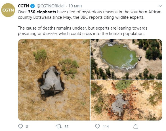 Отметим, что у мертвых слонов заподозрили COVID-19. Эксперты взяли пробы и отправили их в другую страну для анализа. Ученые также заверили, что туши животных необходимо проверить на наличие патогенных микроорганизмов или ядов.