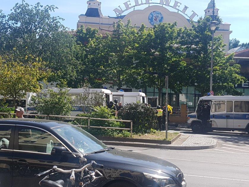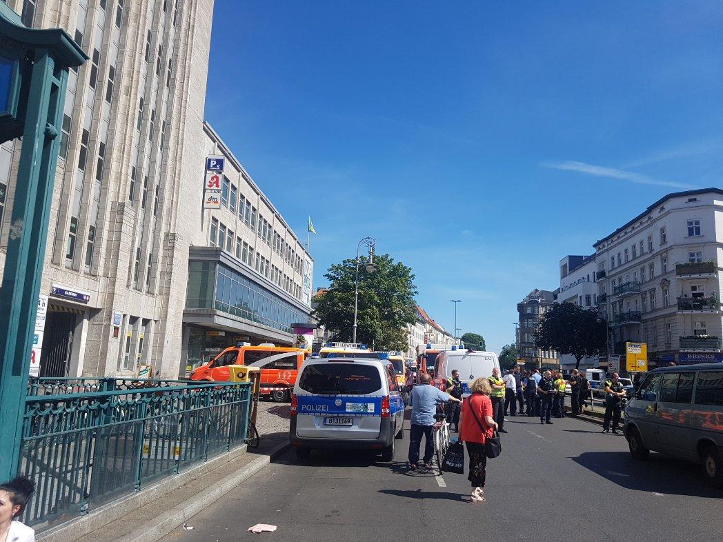 Полиция перекрыла доступ к универмагу. Улица Hasenheide, проходящая с южной стороны универмага, закрыта для движения. На месте десяток полицейских машин, а также около десяти машин скорой помощи и других автомобилей.