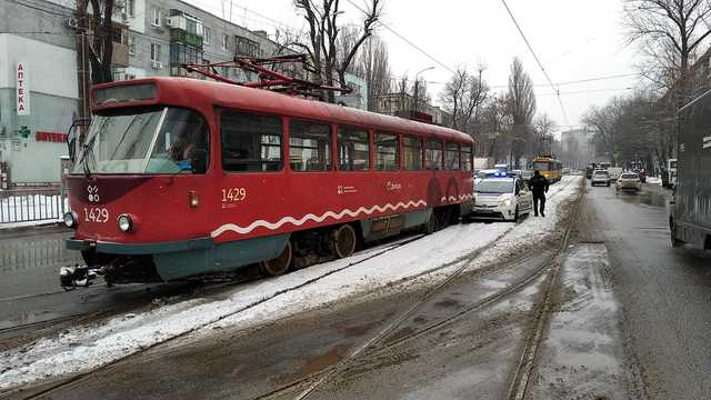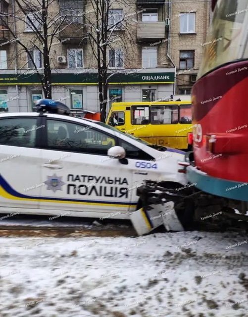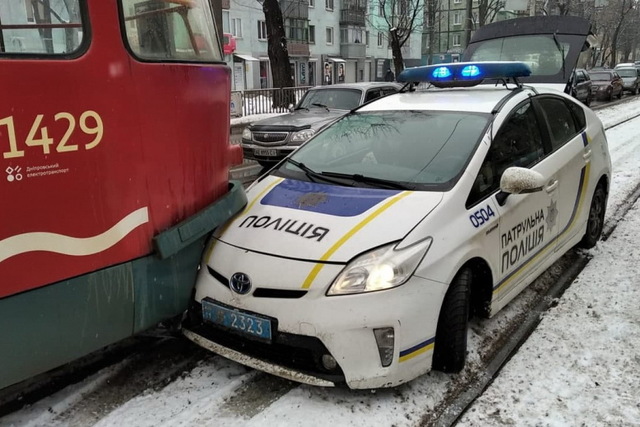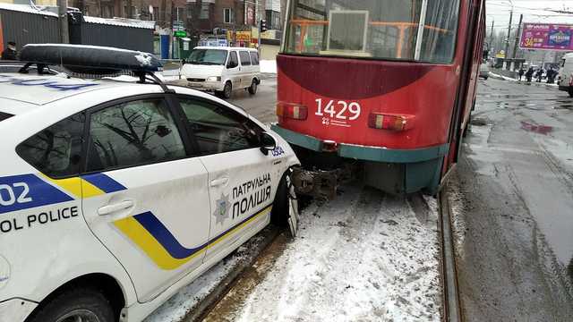 В Днепре автомобиль патрульной полиции врезался в трамвай.