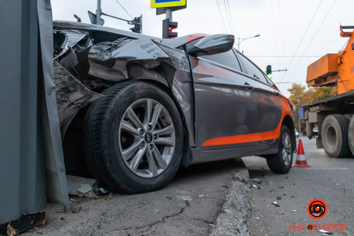 В Днепре в четверг, 29 октября, на перекрестке улиц Паникахи и Тополиной произошло масштабное ДТП - после столкновения Mitsubishi и Hyundai, последний вылетел на тротуар, сбил двух пешеходов и въехал в киоск.