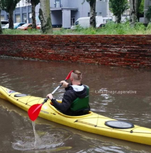 Так, некоторые днепряне по улицам перемещались "вплавь" на байдарке.