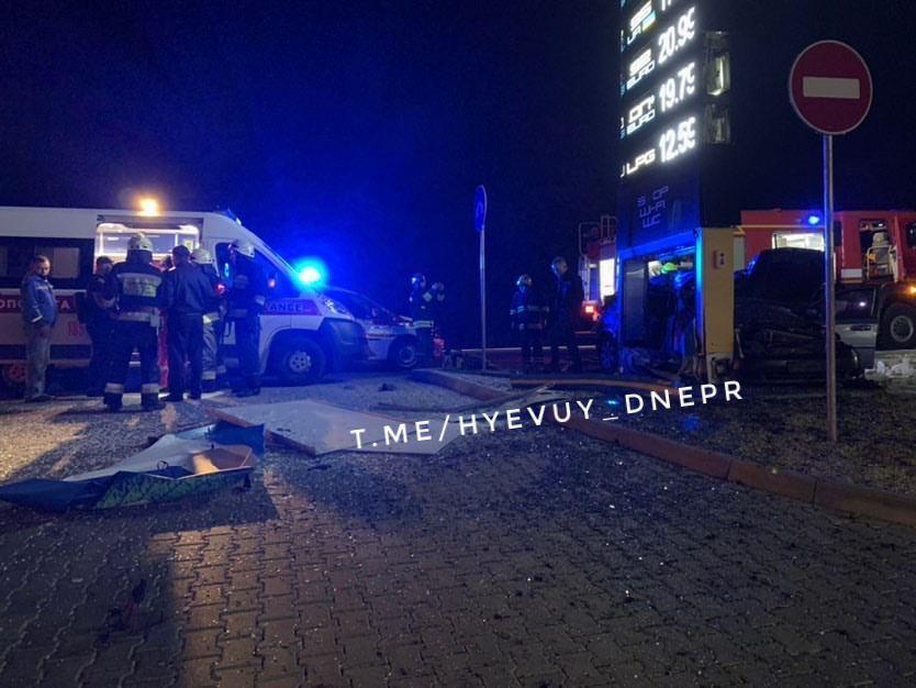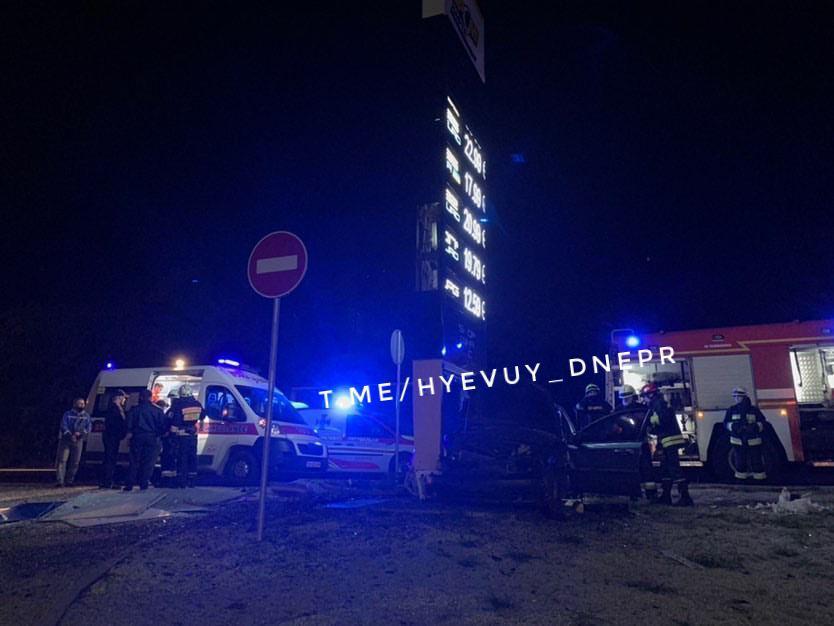В Днепре на Запорожском шоссе водитель Chevrolet на полной скорости врезался в стелу заправки.