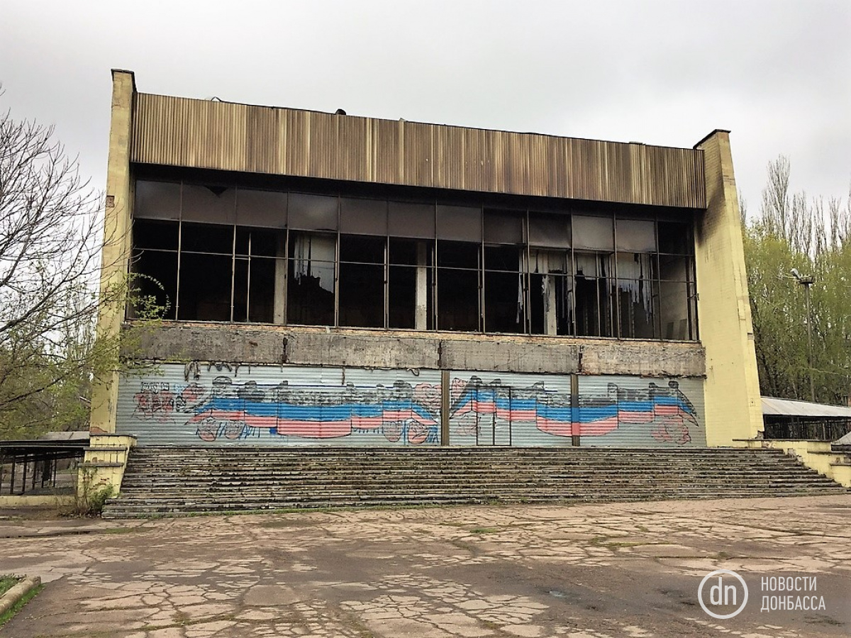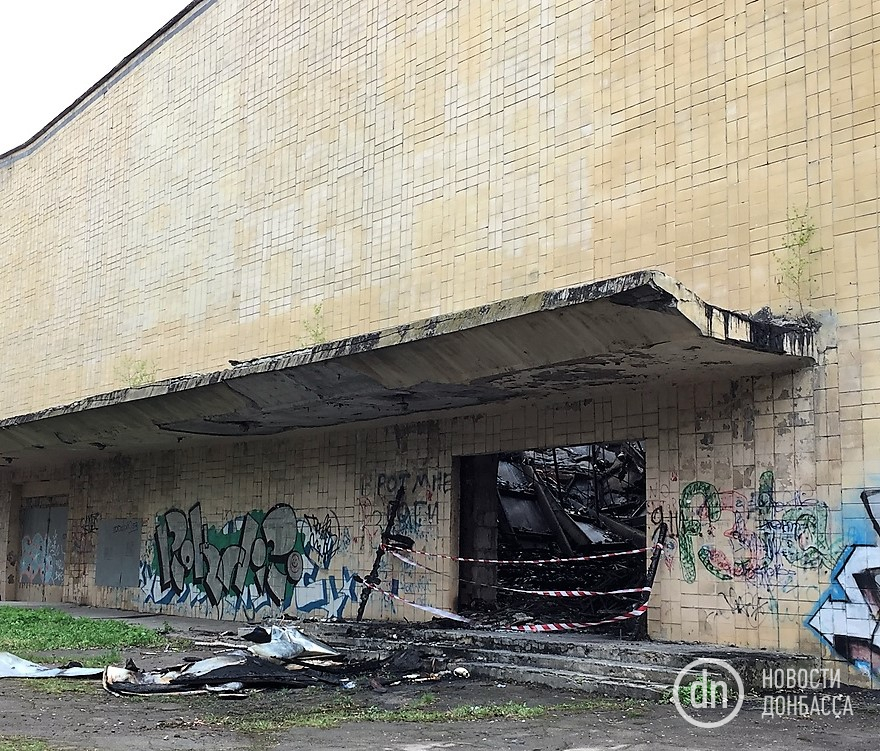 Возгорание произошло внутри здания. Помещение бывшего кинотеатра "Донецк" серьезно пострадало. Крыша полностью сгорела и осыпалась, частично рухнули бетонные перекрытия.