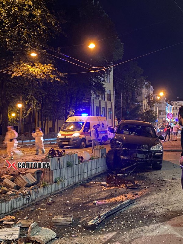ДТП произошло вечером 2 сентября около отеля "Харьков Палас". Там элитный автомобиль вылетел на тротуар и раскурочил клумбу.
