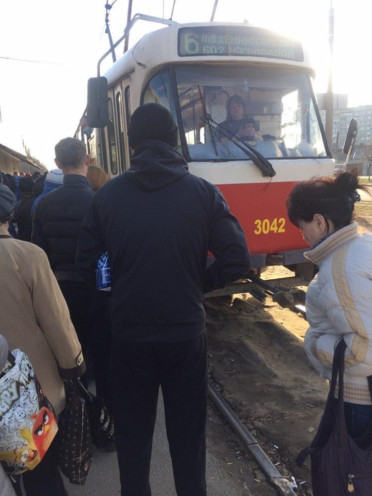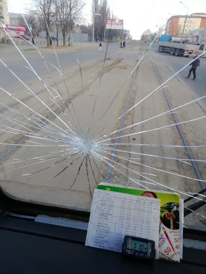 На одной из остановок трамвая разъяренные пассажиры разбили лобовое стекло, на место прибыла полиция.