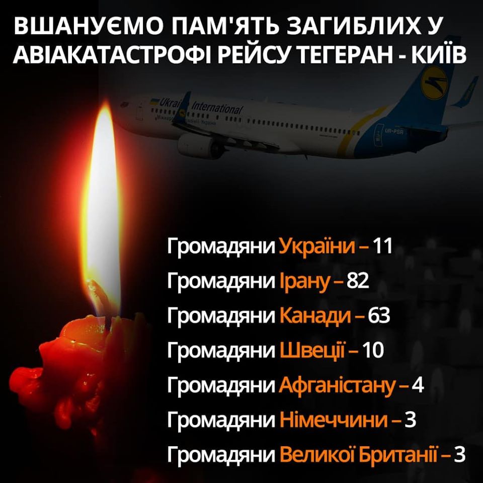 09:47 Обнародован список погибших граждан Украины после крушения лайнера в Тегеране: